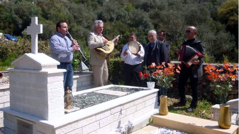 Οἱ κάτοικοι καὶ συγγενεῖς τῶν ἐνταφιασμένων νεκρῶν, πηγαίνουν μὲ ὀργανοπαῖχτες – ἔχοντας συνήθως κλαρῖνο, βιολὶ , λαοῦτο καὶ ντέφι- πάνω ἀπὸ τοὺς τάφους τῶν ἀγαπημένων τους. Ἐκεῖ, οἱ συγγενεῖς τοῦ νεκροῦ, ἀφοῦ τελέσουν τὸ τρισάγιο ἀπὸ τὸν ἱερέα, μετὰ παραγγέλνουν τὸ ἀγαπημένο τραγούδι του, ὅσο ἦταν στὴν ζωή, γιὰ νὰ ἀκουστῆ πάνω ἀπὸ τὸν τάφο του. Μὲ αὐτὸν τὸν παράδοξο καὶ συμβολικὸ τρόπο, συνδέουν τὴν ζωὴ καὶ τὸν θάνατο μὲ μιὰ ἰδιότυπη ἐπικοινωνία μεταξὺ νεκρῶν καὶ ζωντανῶν, μέσα ἀπὸ τὴν ὁποία «προσδοκᾶται» ἡ ἀναστάσιμη ἐλπίδα, ἡ ὁποία σύμφωνα μὲ τὴν ἀναστάσιμη ψαλμωδία ἡ ζωὴ νικάει τὸν θάνατο.